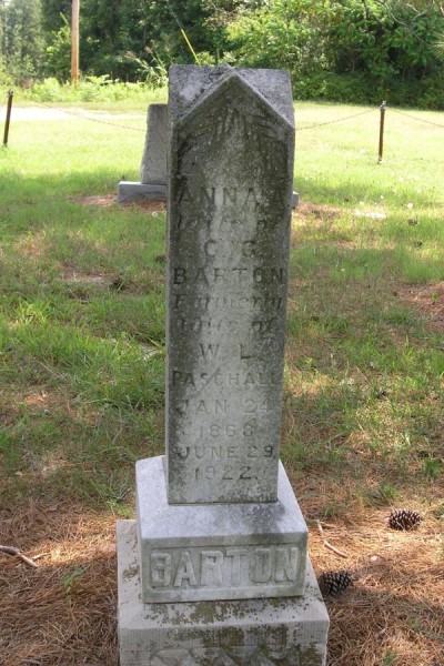 Barton, Anna A. Jan. 24, 1868 - June 29, 1922 Wife of W. L. Paschall;