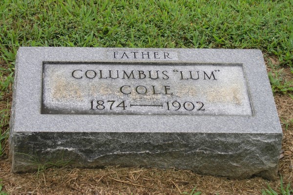 Cole, Columbus "Lum" 1874 - 1902 (son of John and Rebecca nee Windsor Cole