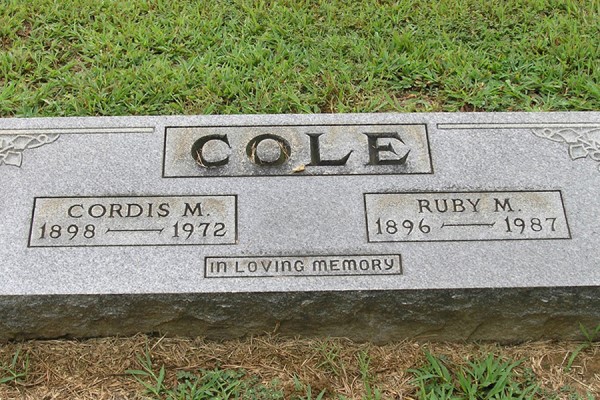 Cole, Lovie B. Aug. 31, 1891 - May 5, 1979 wife of