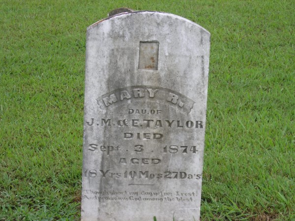 Taylor, Mary R. --- - Sept. 3, 1874; age 18y 10m