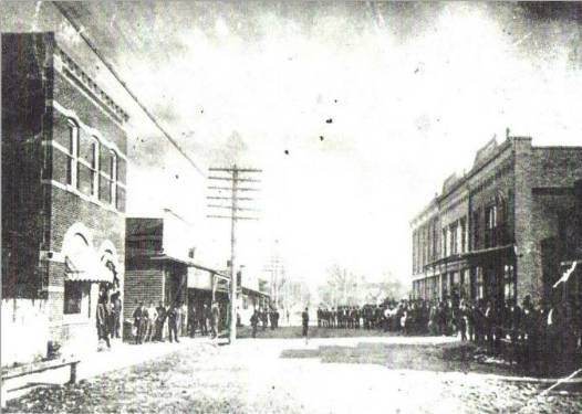 Establishments on the right are C.D. Seyster (Reynolds Grocery), Bridges Store, Clopton Drug Store,